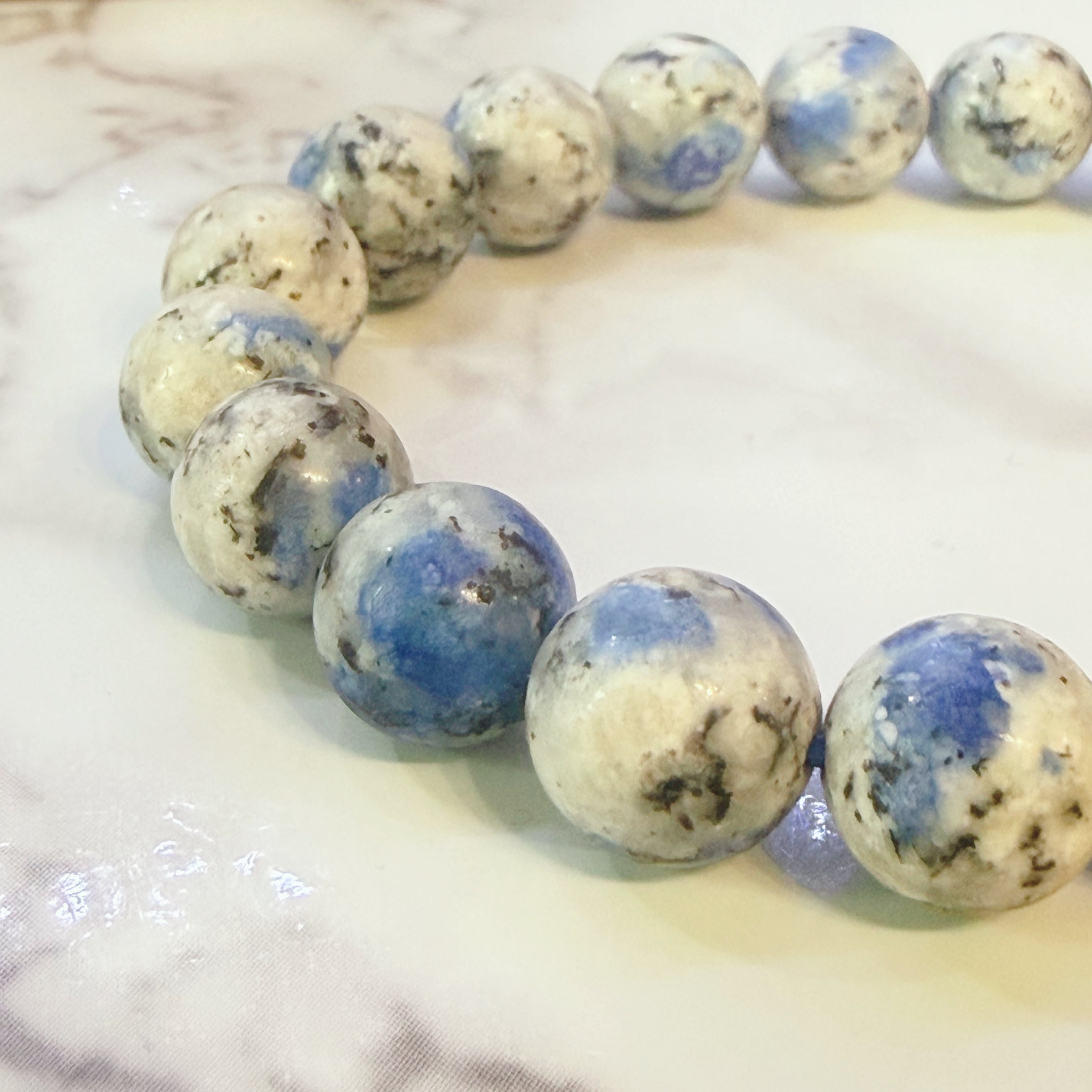 このk2アズライト(k2ストーン)10mmは、鮮やかな青と美しい模様が組み合わさった特別なアイテムです。アズライトは「直感を高める石」として知られ、持つ人に深い洞察と内なる平和をもたらします。日常生活の中で、その力を実感することができるでしょう。